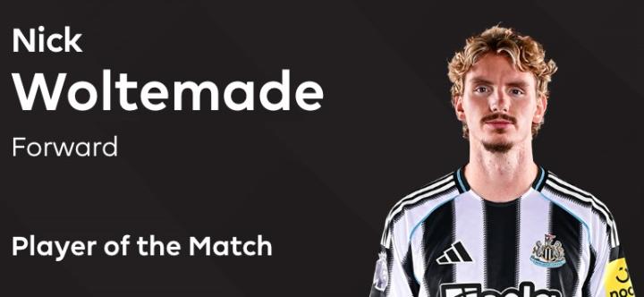 打入脚后跟进球,沃尔特马德当选纽卡客战布莱顿全场最佳
